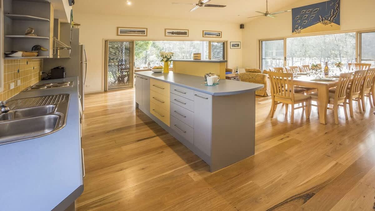 Located on the water's edge of Lake Conjola this incredible home accommodates 9 Guests comfortably with 4 bedrooms, 2 living spaces, a spacious open plan living dining and kitchen that leads out onto a beautiful outdoor entertaining area and 2 bathrooms. This home allows you to enjoy your getaway with all of the amenities you require to be able to relax, unwind and disconnect from the outside world. Wifi available.