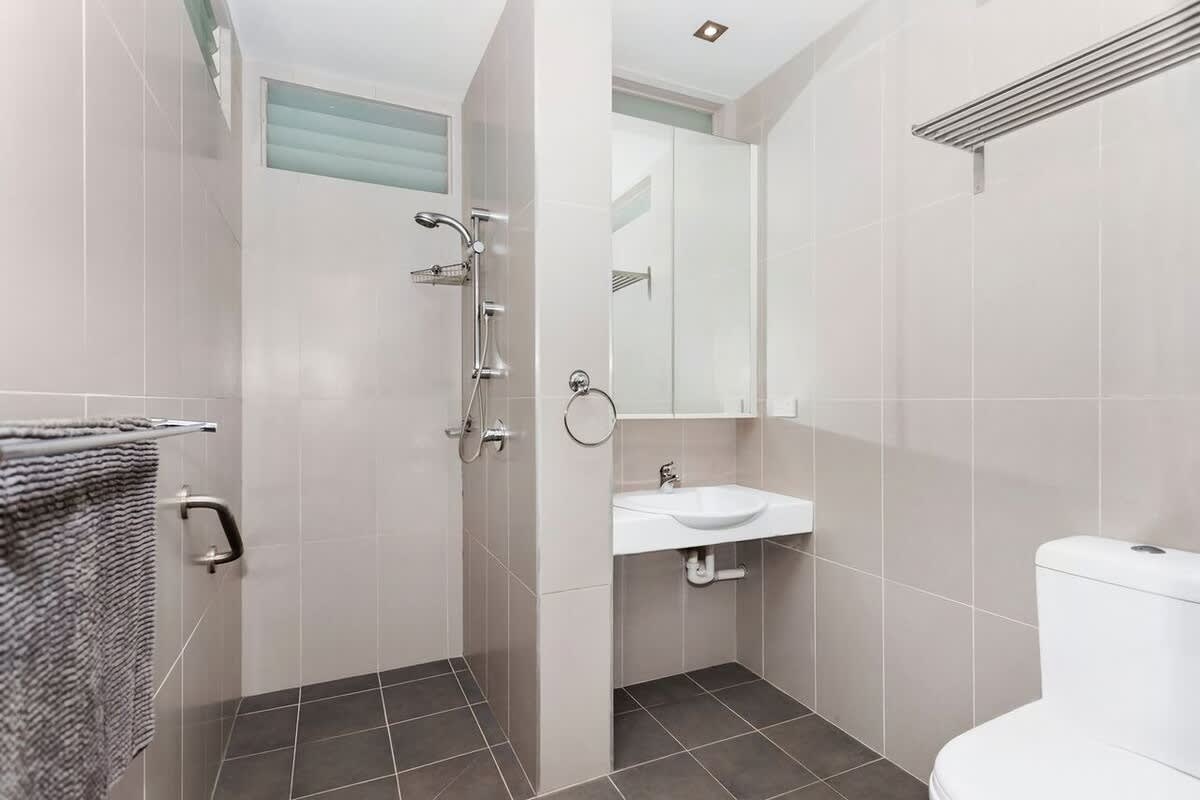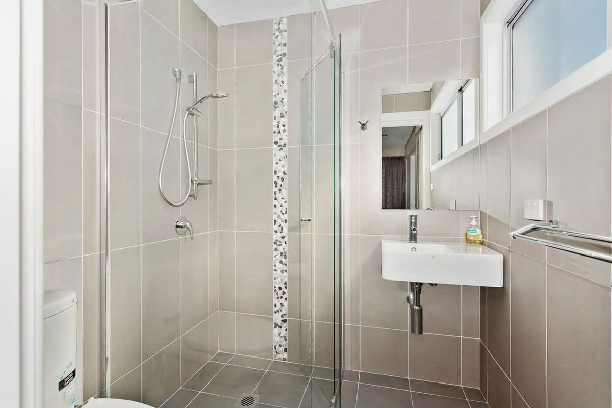 The downstairs bedroom and bathroom has been renovated to accommodate a wheelchair. This room offers a double bed, built in robe and ceiling fan