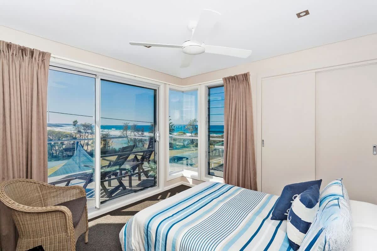 Bedroom 1 - queen sized bed, ensuite, ceiling fan, Built in robe and private deck with ocean views (upstairs)