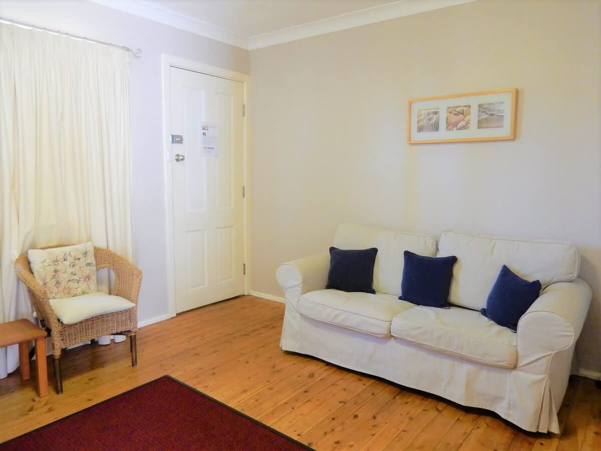 Sit on the back deck, cook up an easy dinner on the shared BBQ in the yard and relax. A gate leads from the deck to the large shared yard, which is well shaded and backs onto a bushy reserve.