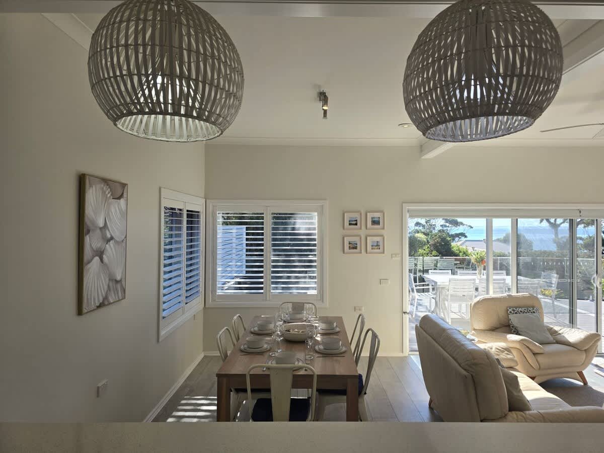Welcome to the regal Fairwater in Mollymook, a sophisticated holiday rental that combines sublime comfort with a splendid location. This beautiful residence accommodates up to 10 guests, making it an ideal retreat for extended families or a group of friends seeking the ultimate coastal getaway.