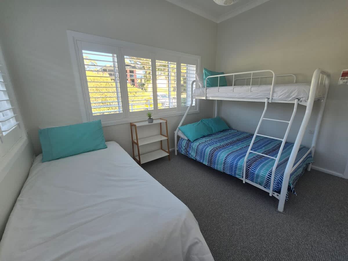 - Linen is NOT provided at this property. Please bring your own, or alternatively, contact our office for hire details. Bed configuration is 4 queens, 1 single and 1 tri bunk(single over double)