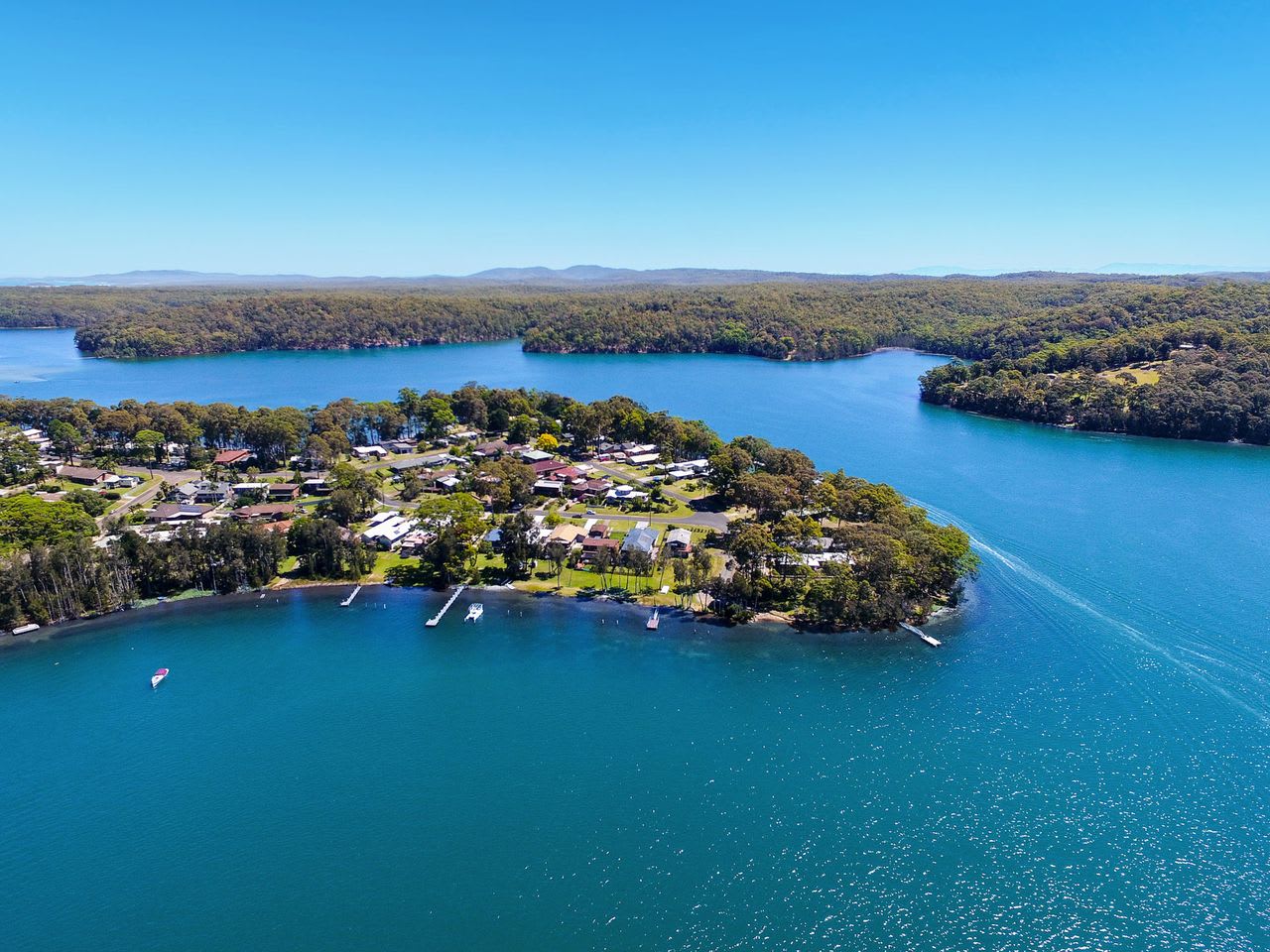 Enjoy the pleasures of walking down to the lake that offers waterskiing, fishing and loads of activities for all the family. This three bedroom, air conditioned retreat accommodates 11 people with one queen bed, and three triple bunks (double bed with single over). Let the kids enjoy the lake while you relax on the deck with undisturbed views.