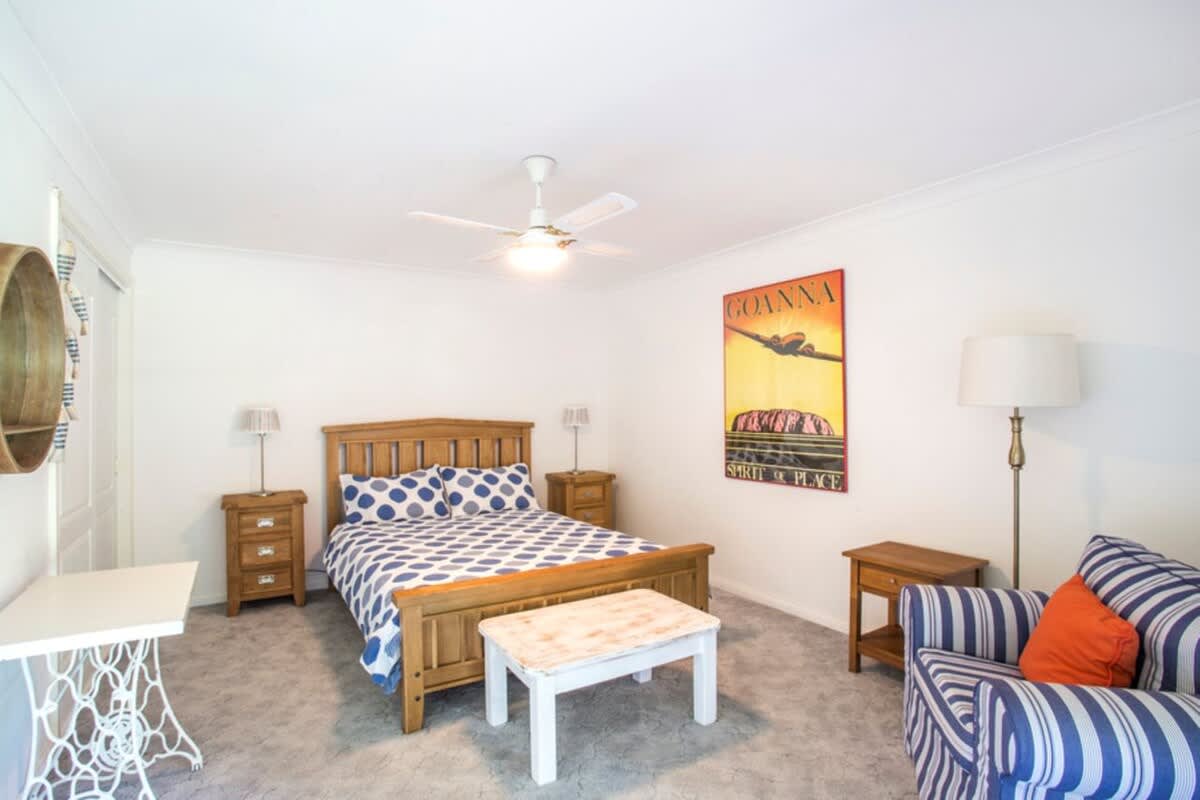 Bedroom 1 - Queen with ceiling fan, en-suite and walk-in-robe
