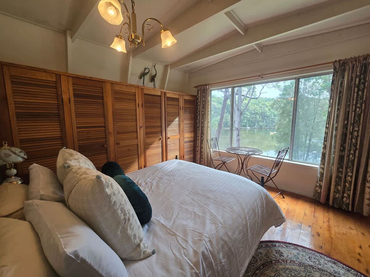 The bedding configuration boasts one queen-sized bed in the main bedroom that overlooks the lake, the second bedroom has 2 single beds that provide a peaceful night's sleep.